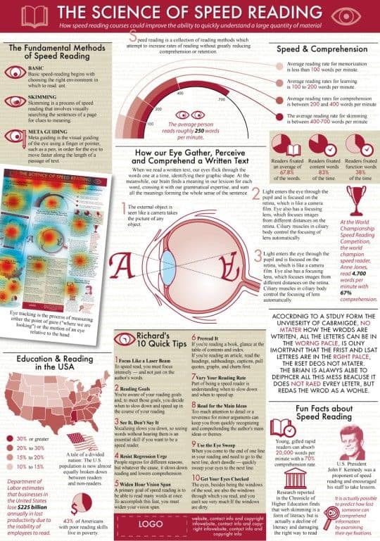 Fast reading is a method which enables to read at a faster pace without greatly affecting comprehension. Here the main thing to keep in mind is that you should see not say the words. With this technique, you keep on reading without digression and regression. By the way, myriad mobile applications have been created to help people become faster readers, eg. QuickReader, Readme, Accelerator, Spreeder etc.).