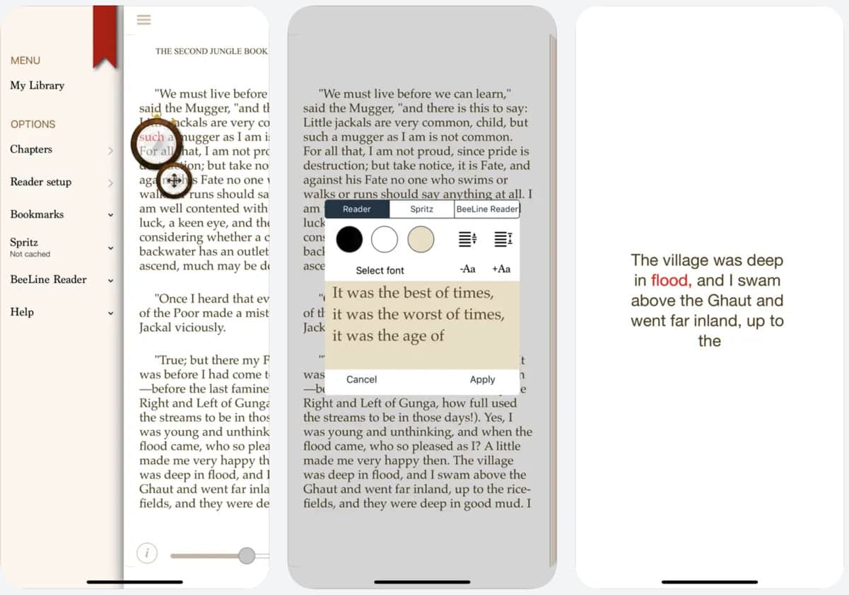 One thing to be kept in mind is that Spritz requires an Internet connection, but while using ReadMe! you can cache your eBooks and make them easily available for offline use. This can reduce your data usage.