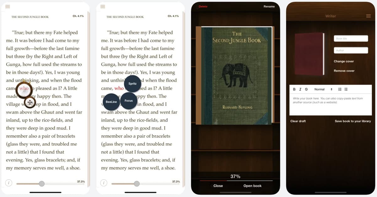 The ReadMe! app comes with built-in Spritz technology, a streaming technology that reduces eye movement and enables effective evaluation of digital content. It is an entertaining way to increase your skills and help readers deliver a more focused user experience. ReadMe! also provides support and assistance to readers much faster, with minimal effort, on any device of your choice.