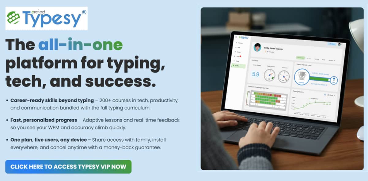 We already know that Typesy combines structured touch-typing lessons, video-based instruction, and engaging games with adaptive, data-driven guidance that quietly learns from your progress.